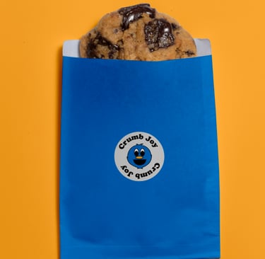 A Crumb Joy é uma marca de cookies que nasceu do sonho de dois amigos de infância, Ana e Pedro, que sempre adoraram cozinhar juntos. Depois de anos trabalhando em empregos corporativos, decidiram seguir sua paixão por doces. Inspirados pelas memórias de assistir Vila Sésamo e comer cookies caseiros, criaram a loja com o objetivo de trazer essa mesma sensação de conforto e alegria para outras pessoas.