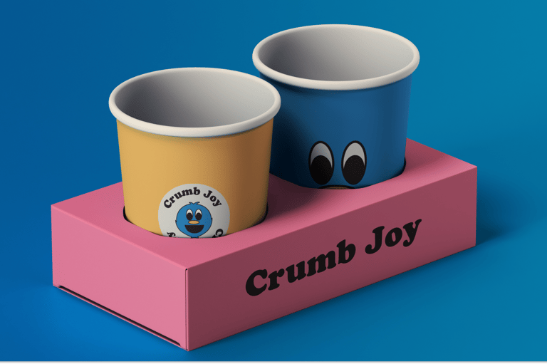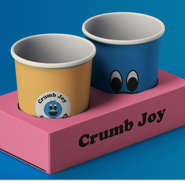 Toda a comunicação verbal da Crumb Joy foi elaborada para refletir seu lado extrovertido, criativo e alegre. Essa abordagem não apenas captura a essência da marca, mas também busca criar um laço emocional com os clientes, tornando a experiência mais envolvente e memorável.
